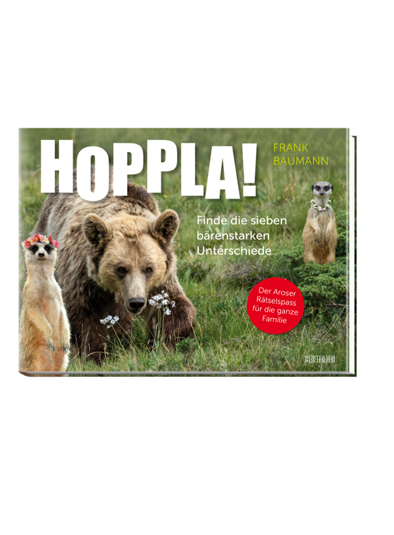 Dieses Buch ist eine fiese Mogelpackung. Was wie ein harmloser Bildband über die Aroser Bären daherkommt, ist in Tat und Wahrheit ein kniffliger Rätselspass für die ganze Familie. Sein Vorgänger, »Was stimmt hier nicht? Finde die sieben Unterschiede«, der 2019 beim Verlag Kein & Aber erschienen ist, wurde von den Medien in den höchsten Tönen gelobt und verkaufte sich so grossartig, dass er auf Platz 1 der Amazon-Bücher-Bestsellerliste landete. Der Folgeband für Kein & Aber ist, coronabedingt verspätet, noch in Arbeit. Dafür hat Frank Baumann während des Lockdowns ein Rätselbuch nur für die Schweiz realisiert. Es spielt im Arosa Bärenland. Die Suche nach den sieben Unterschieden braucht starke Nerven und kann Zartbesaitete in den Wahnsinn treiben. Erfahrungsgemäss tun sich Kinder wesentlich weniger schwer mit so anspruchsvollen Aufgaben. Eltern und Grosseltern sind dank deren Hilfe also deutlich im Vorteil.